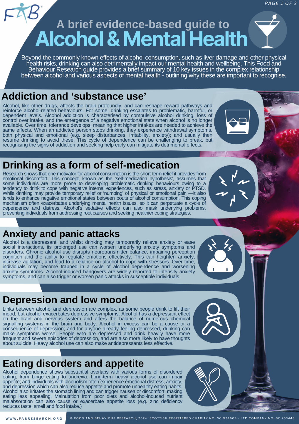 Beyond the commonly known effects of alcohol consumption, such as liver damage, it is also now known that drinking can also detrimenally impact our mental health and well being. This FAB Research guide will take you through 10 key points including;